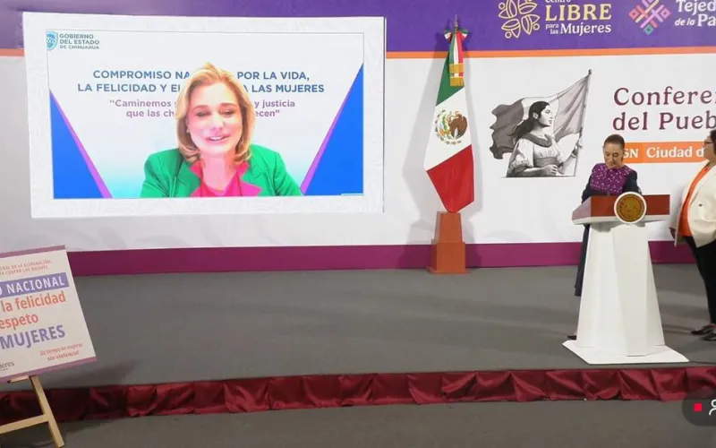 La gobernadora Maru Campos participó en la conferencia del pueblo de la presidenta Claudia Sheinbaum, con el objetivo de firmar la adhesión de Chihuahua al compromiso nacional por la vida, la felicidad y el respeto hacia las mujeres.