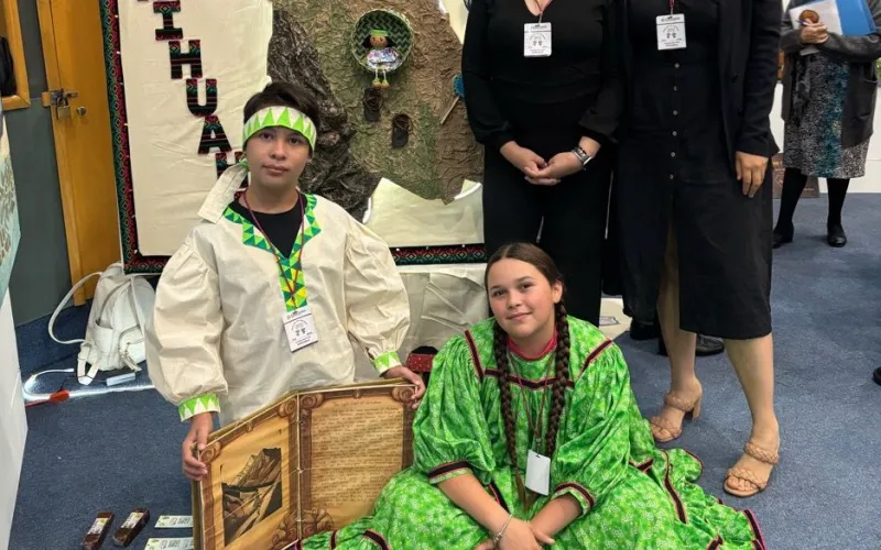 Jayla María Ruiz y Bryan David Pérez Arana, estudiantes de la Primaria Estatal María Guadalupe Quintanilla No.2258 de Buenaventura, obtuvieron el segundo lugar nacional en la “Feria de las Culturas: Relatos de Identidad 2025”.