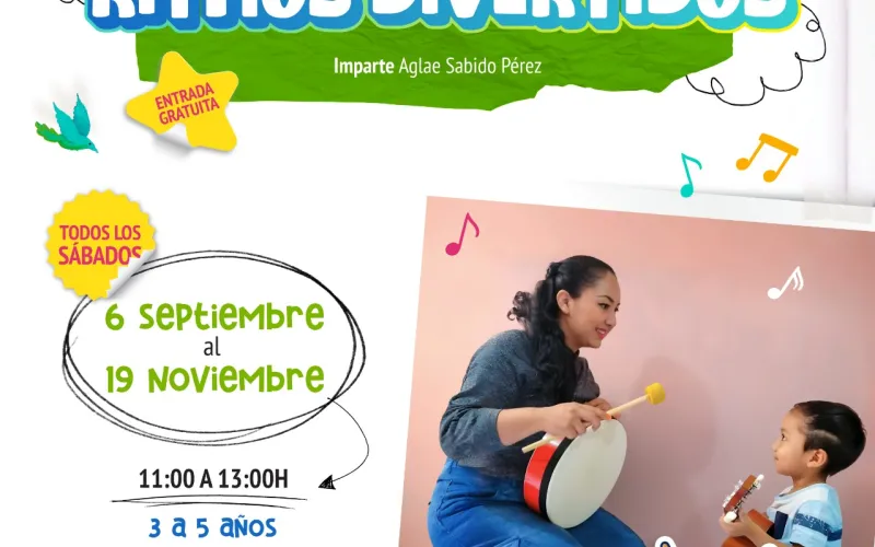 También se ofertará el curso de Ritmos Divertidos, que recibirá a infantes de 3 a 5 años todos los sábados a partir del 6 de septiembre de 11 de la mañana a 1 de la tarde, en el mismo, las y los niños, acompañados de su padres o tutores, disfrutarán del movimiento y los sonidos en un ambiente lleno de juego y conexión.