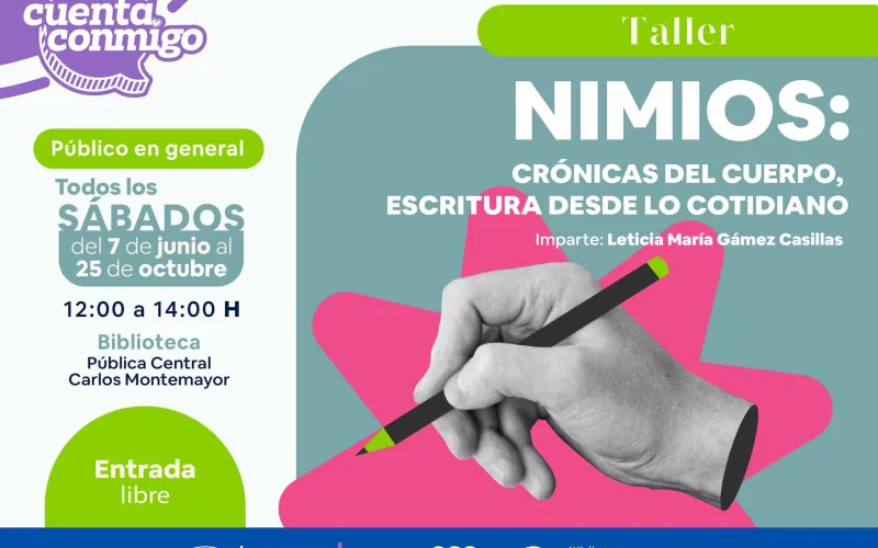 Para los interesados en escritura creativa, el taller Nimios de Leticia María Gámez Casillas, cuenta con espacios todos los sábados desde el sábado 7 de junio al 25 de octubre en horario sabatino de 12:00 a 2:00 de la tarde.