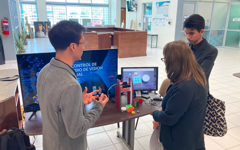 Estudiantes del quinto cuatrimestre del nivel de Técnico Superior Universitario (TSU) en Mecatrónica de la Universidad Tecnológica Paso del Norte (UTPN), presentaron prototipos que utilizan Inteligencia Artificial para distintos propósitos.