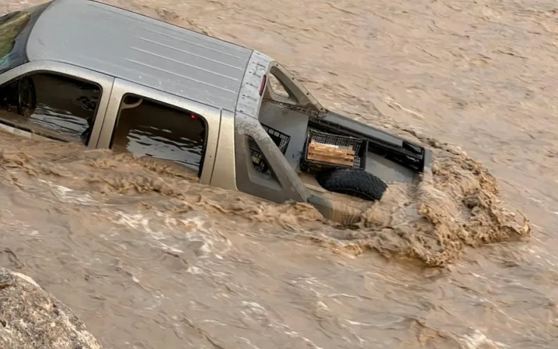 En Ojinaga, se notificó un vehículo varado en un cauce, sin personas lesionadas.