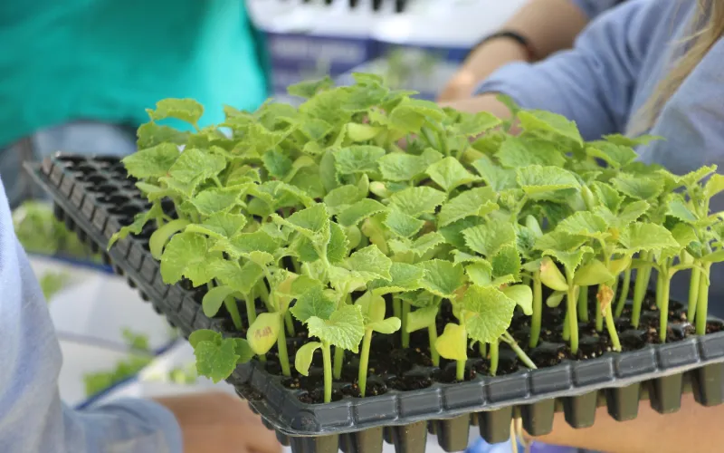 También se distribuyeron cerca de 200 charolas con plántulas de hortalizas como: chile chilaca, chile jalapeño, pepino, tomate, cebolla, melón y sandía.