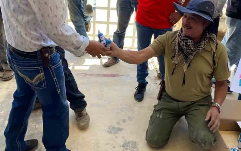Además, se entregaron 700 goteros de plata coloidal, dos cubetas de pastillas de hipoclorito de calcio, 60 garrafones, 100 jarras de agua y tinacos en las comunidades de El Pinito, Barbechitos, Chinatú, Palos Muertos, la Arenosa, Pino Gordo, Agua Amarilla y Corre Coyote.