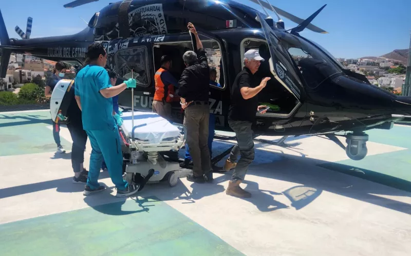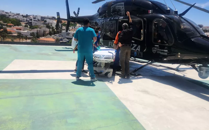 El traslado se llevó a cabo a bordo de la aeronave Bell 429, desde el aeródromo de Guachochi, con el apoyo de pilotos de la SSPE y médicos voluntarios de la CEPC.