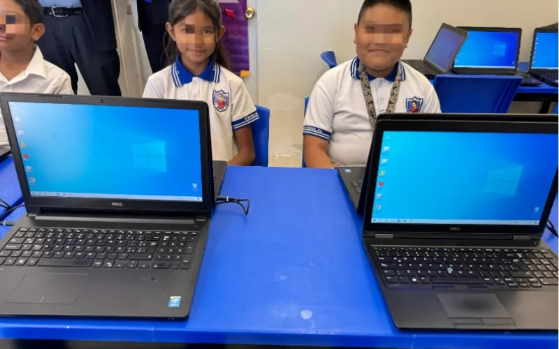 Una de las recién beneficiadas fue la primaria federal Leyes de Reforma, que recibió 16 equipos de cómputo por Grupo Cementos de Chihuahua para su aula de medios, la empresa priorizó el plantel por la cercanía con sus instalaciones, como parte de su compromiso social.