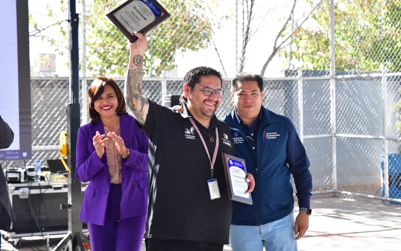 Por contribuir con el sector educativo, el titular de la SEyD, Francisco Hugo Gutiérrez Dávila; el subsecretario de Educación Básica, Lorenzo Arturo Parga Amado; y la directora general de Servicios Educativos del Estado de Chihuahua (Seech), galardonaron a las y los conferencistas.