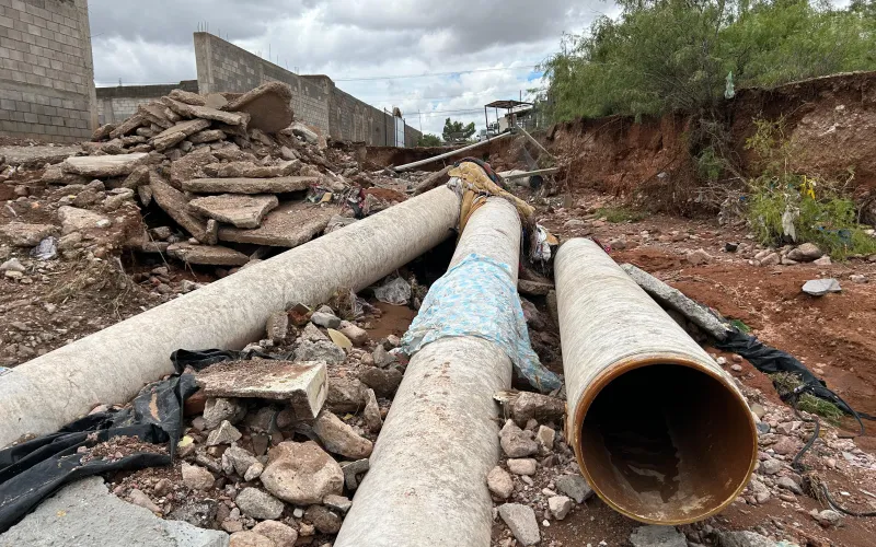 La Junta Municipal de Agua y Saneamiento (JMAS) de Chihuahua inició los trabajos de articulación de la conducción de bajada del tanque Norte 2, que fue dañado por las torrenciales lluvias del lunes 30 de junio.