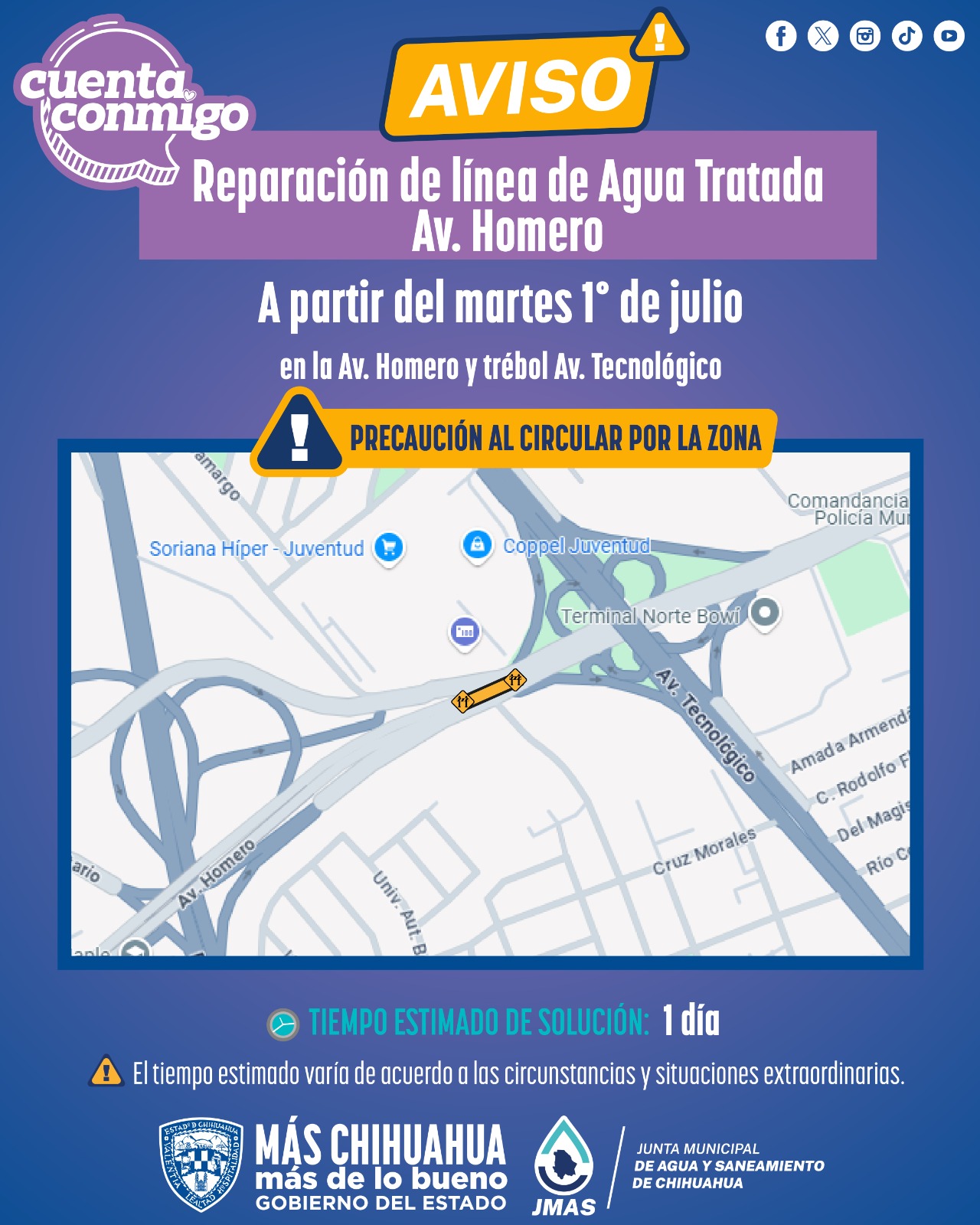 La Junta Municipal de Agua y Saneamiento (JMAS) de Chihuahua, informó