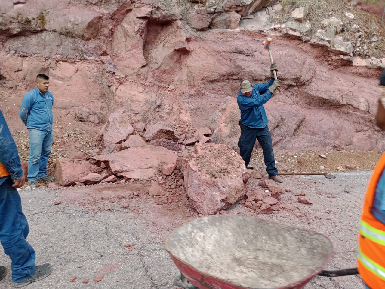Se realizó la remoción de material producto de los derrumbes registrados en el camino que conecta San Pedro-Creel- Guachochi.