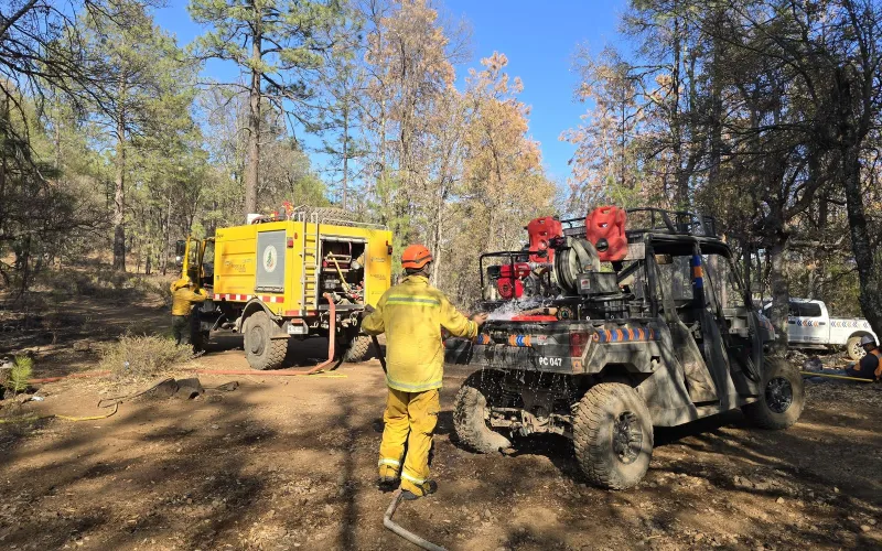 Como parte de las labores de colaboración institucional, se coordinó además el traslado de un colapsable proporcionado por la Comisión Nacional Forestal (Conafor), el cual será utilizado para abastecer de agua al helicóptero destinado para la atención de los siniestros.