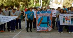 Con carteles, activación física y caminata en la deportiva dicen “no a las drogas”