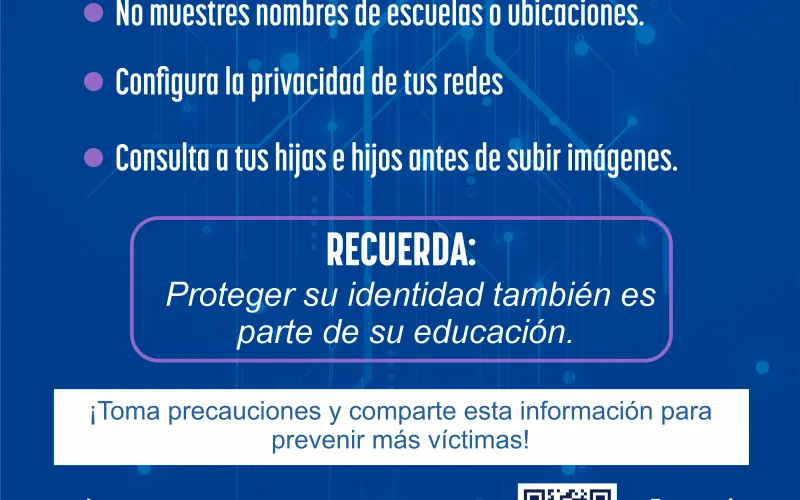La dependencia exhorta también a no publicar información que pueda revelar rutinas familiares o puntos de tránsito escolar. Lo emotivo no siempre debe ser público: proteger su identidad también es parte de su educación.