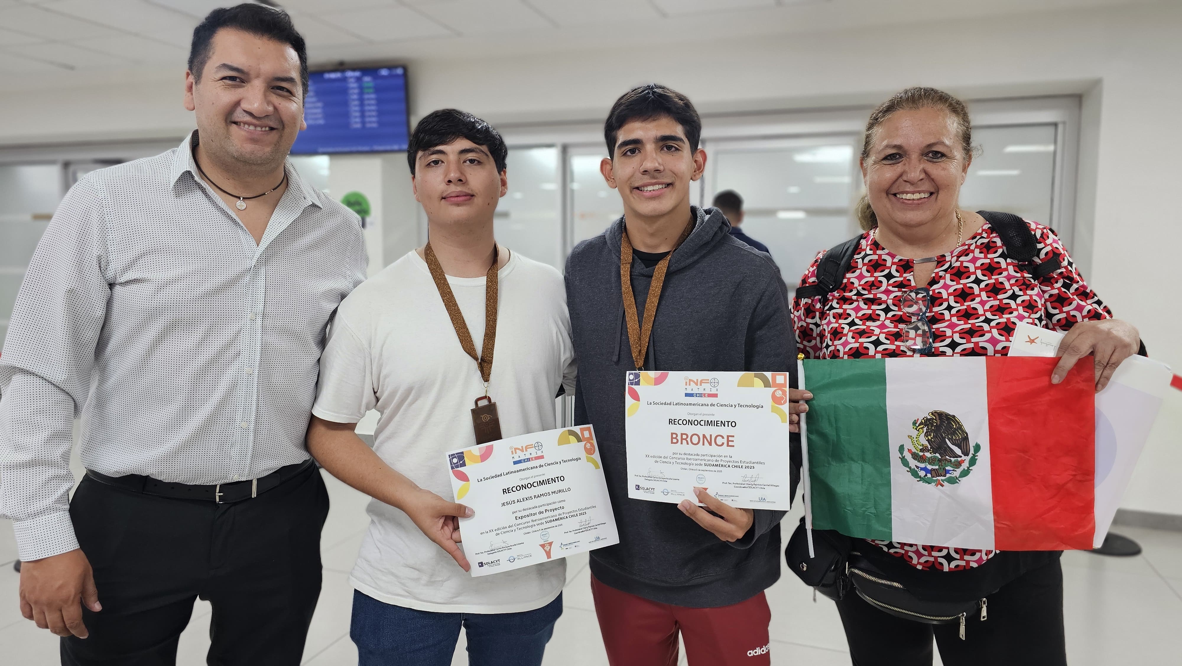 Alumnos del Colegio de Estudios Científicos y Tecnológicos del Estado de Chihuahua (CECyTECH) No.8 Cuauhtémoc, obtuvieron la medalla de bronce en el Concurso Latinoamericano de Proyectos Estudiantiles en Ciencia y Tecnología (Infomatrix), efectuado San Carlos, Chile.