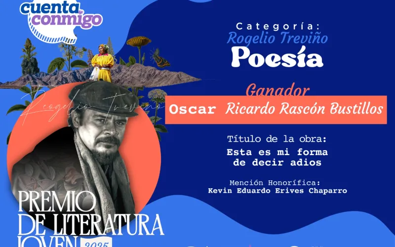 Asimismo, en la categoría de Poesía “Rogelio Treviño”, se reconoció a Oscar Ricardo Rascón Bustillos con su obra “Esta es mi forma de decir adiós” y a Kevin Eduardo Erives Chaparro como mención honorífica.