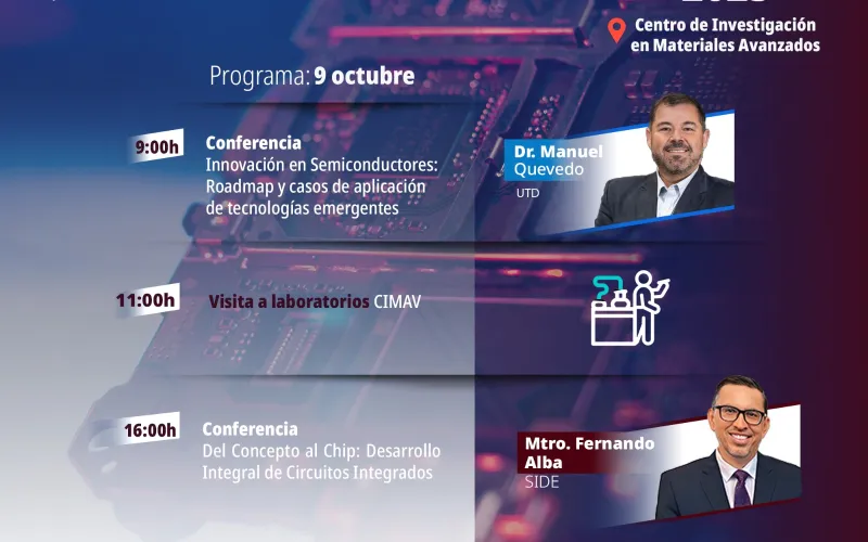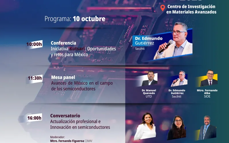 Participarán Manuel Quevedo (UTD), Edmundo Gutiérrez y Fernando Alba (SIDE), quienes expondrán la visión del Gobierno Estatal para fomentar una industria de alta tecnología con independencia en el diseño y producción de semiconductores.