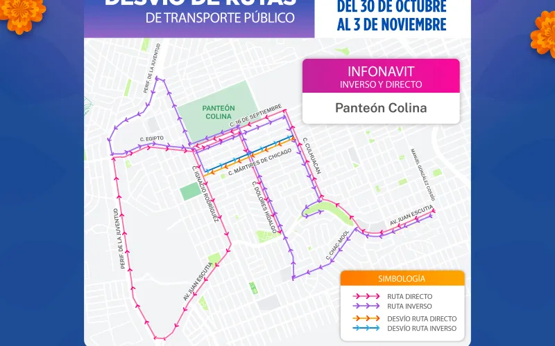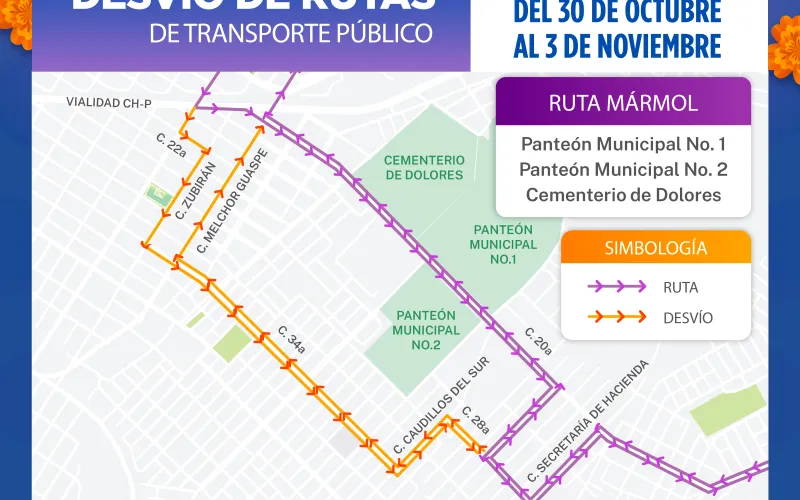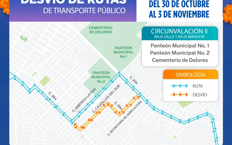 - Los cambios se aplicarán del 30 de octubre al 3 de noviembre, en calles y avenidas cercanas a los panteones de la ciudad
