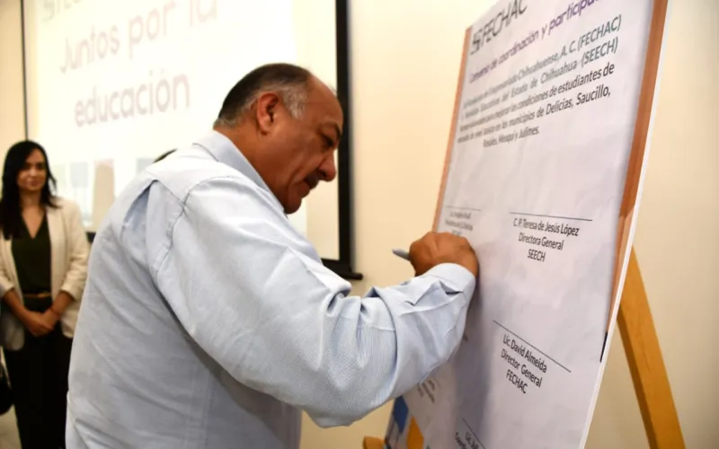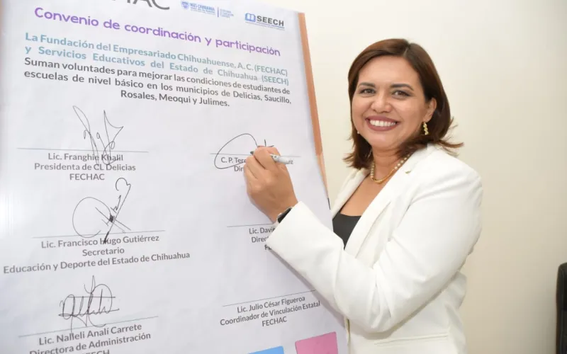 La Secretaría de Educación y Deporte (SEyD), a través de Servicios Educativos del Estado de Chihuahua (SEECH) firmó un convenio de colaboración con la Fundación del Empresariado Chihuahuense (Fechac), para mejorar la infraestructura de 80 planteles de Educación Básica en la región centro-sur.