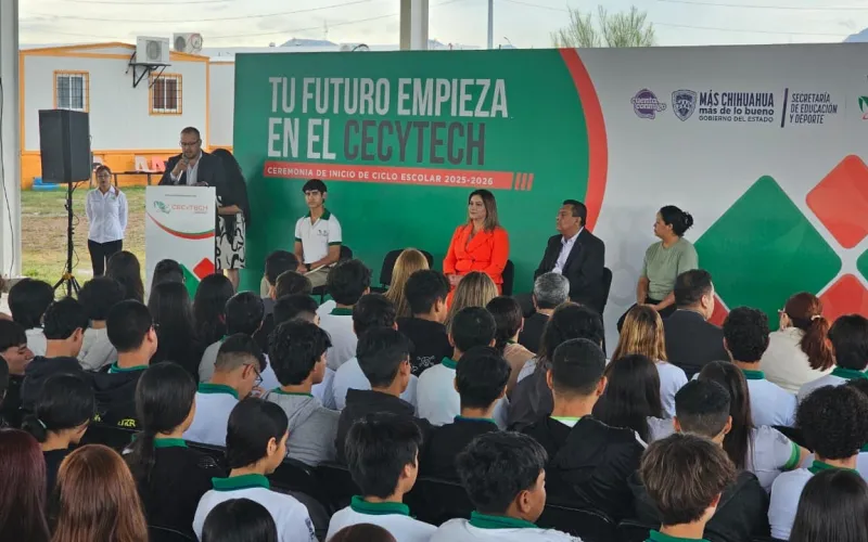 El Colegio de Estudios Científicos y Tecnológicos del Estado de Chihuahua (CECyTECH) arrancó el ciclo escolar 2025-2026 para más de 17 mil estudiantes en 52 planteles de 35 municipios, con una ceremonia encabezada por su directora general, Adriana Ruiz Ramírez, en el Plantel 20 Oriente de la ciudad de Chihuahua.