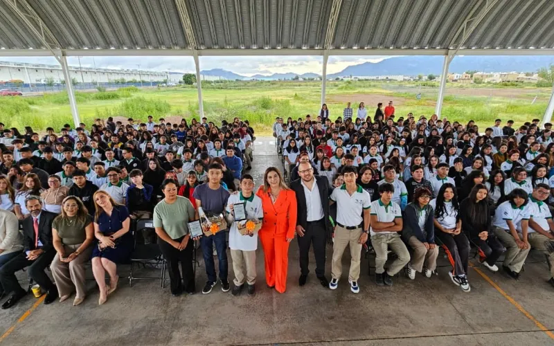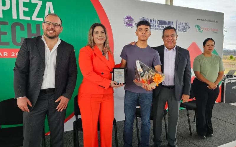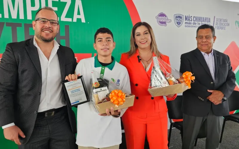 La directora reconoció también a Gabriel Enrique Ojeda Carrillo y Luis Fernando Quintana Ríos, estudiantes del Plantel 20, quienes recientemente obtuvieron medalla de oro en la competencia mundial de robótica celebrada en China, donde demostraron que el talento chihuahuense trasciende fronteras y es ejemplo de disciplina, esfuerzo y visión de futuro.