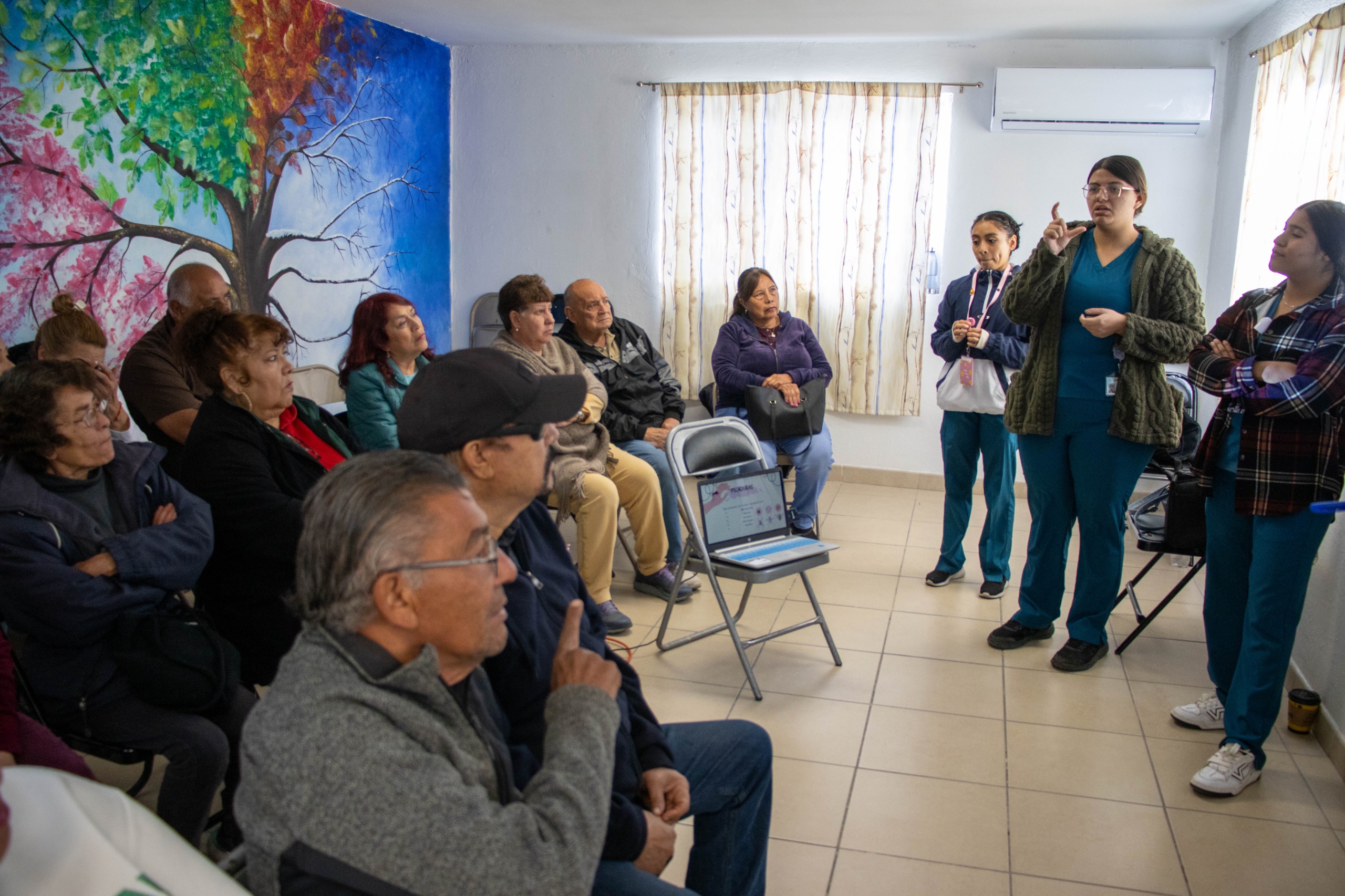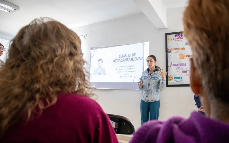 La actividad fue coordinada a través de la Dirección de Grupos Vulnerables, con el apoyo de estudiantes de la Escuela de Enfermería Ángeles Chihuahua, quienes brindaron información clara y práctica sobre cómo actuar ante una emergencia.