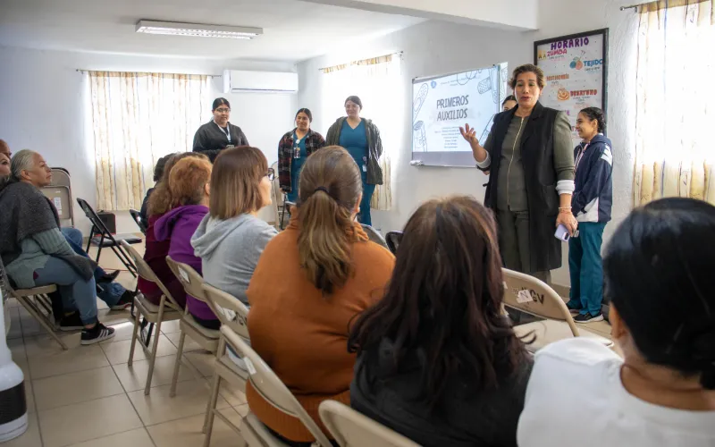 La Secretaría de Desarrollo Humano y Bien Común impartió una plática de primeros auxilios básicos a usuarias y usuarios de la Casa de los Abuelos Norte, como parte de las acciones orientadas a fortalecer su seguridad y protección.