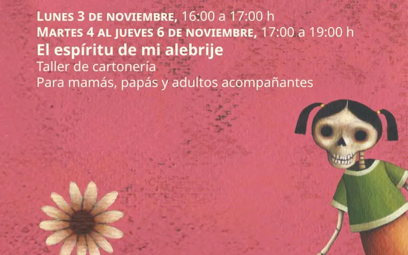 De igual forma, de 4 a 5 de la tarde, se contará con el curso de cartonería “El espíritu de mi alebrije”, dedicado a padres de familia y adultos acompañantes, el mismo también será impartido del martes 4 al jueves 6 de noviembre en un horario de 5 a 7 de la tarde.
