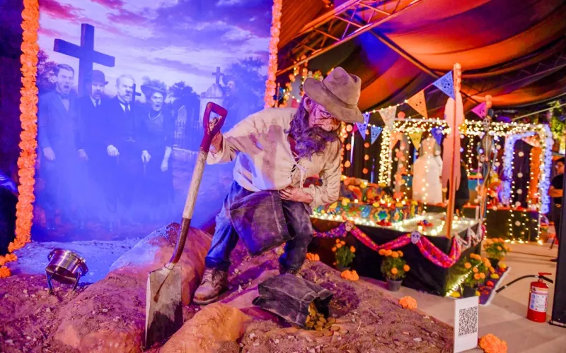 Cada uno de los altares y tumbas elaborados por las instancias participantes representó leyendas originarias de Chihuahua, con el propósito de rescatar la memoria histórica y el legado cultural de la entidad.