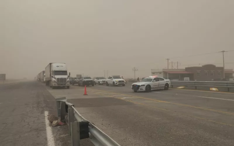 La medida fue tomada como una acción preventiva ante las ráfagas que han generado severas tolvaneras, afectando gravemente la visibilidad en la vía.