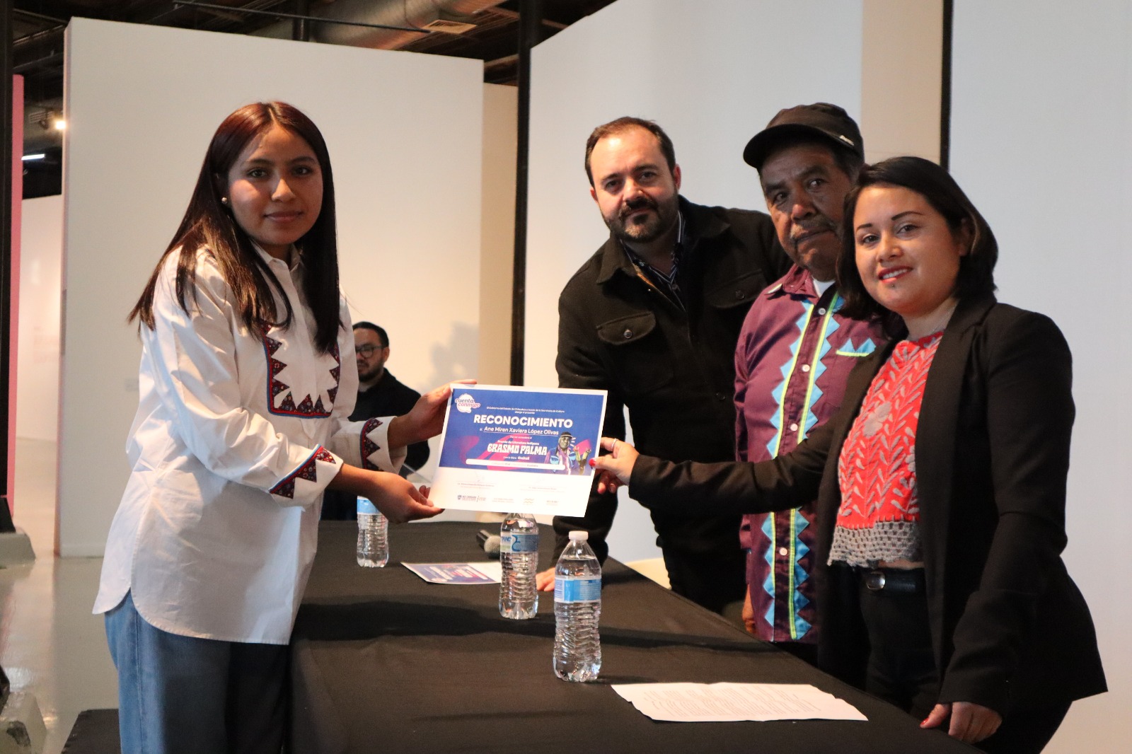 La Secretaría de Cultura condecoró a Ane Marien Xaviera López Olivas y a Martín Chávez Ramírez con el Premio de Literatura Indígena “Erasmo Palma” 2025, en una ceremonia realizada en el Museo Casa Redonda de la ciudad de Chihuahua.