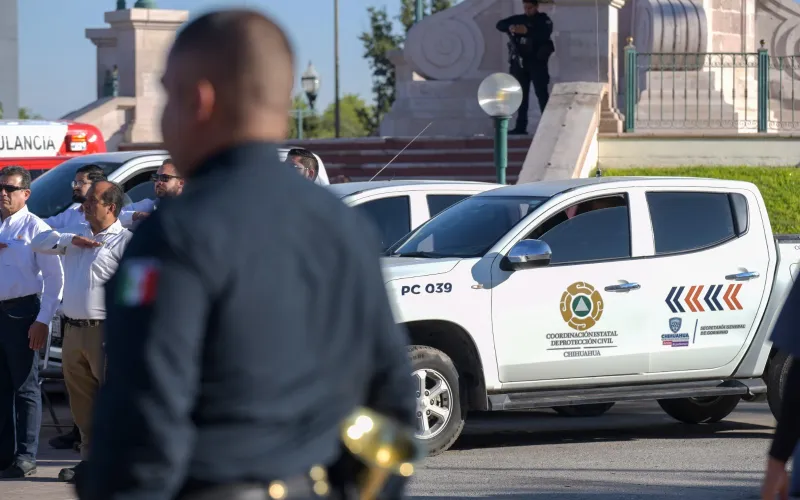 Esta mañana en la Plaza del Ángel de la ciudad de Chihuahua, se llevó a cabo la ceremonia de conmemoración por el Día Nacional de Protección Civil, que reunió a contingentes de instituciones en materia de seguridad, atención a emergencias y prevención de desastres.