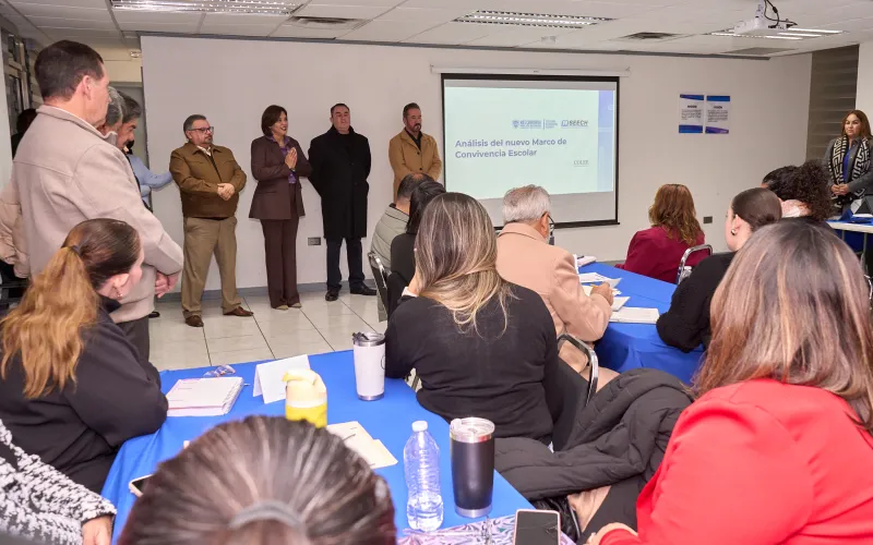Con el objetivo de actualizar las reglas de los planteles educativos y brindar certeza jurídica al magisterio, la Secretaría de Educación y Deporte (SEyD) y Servicios Educativos del Estado de Chihuahua (SEECH) continúan con las mesas de análisis del Marco Local de Convivencia Escolar.