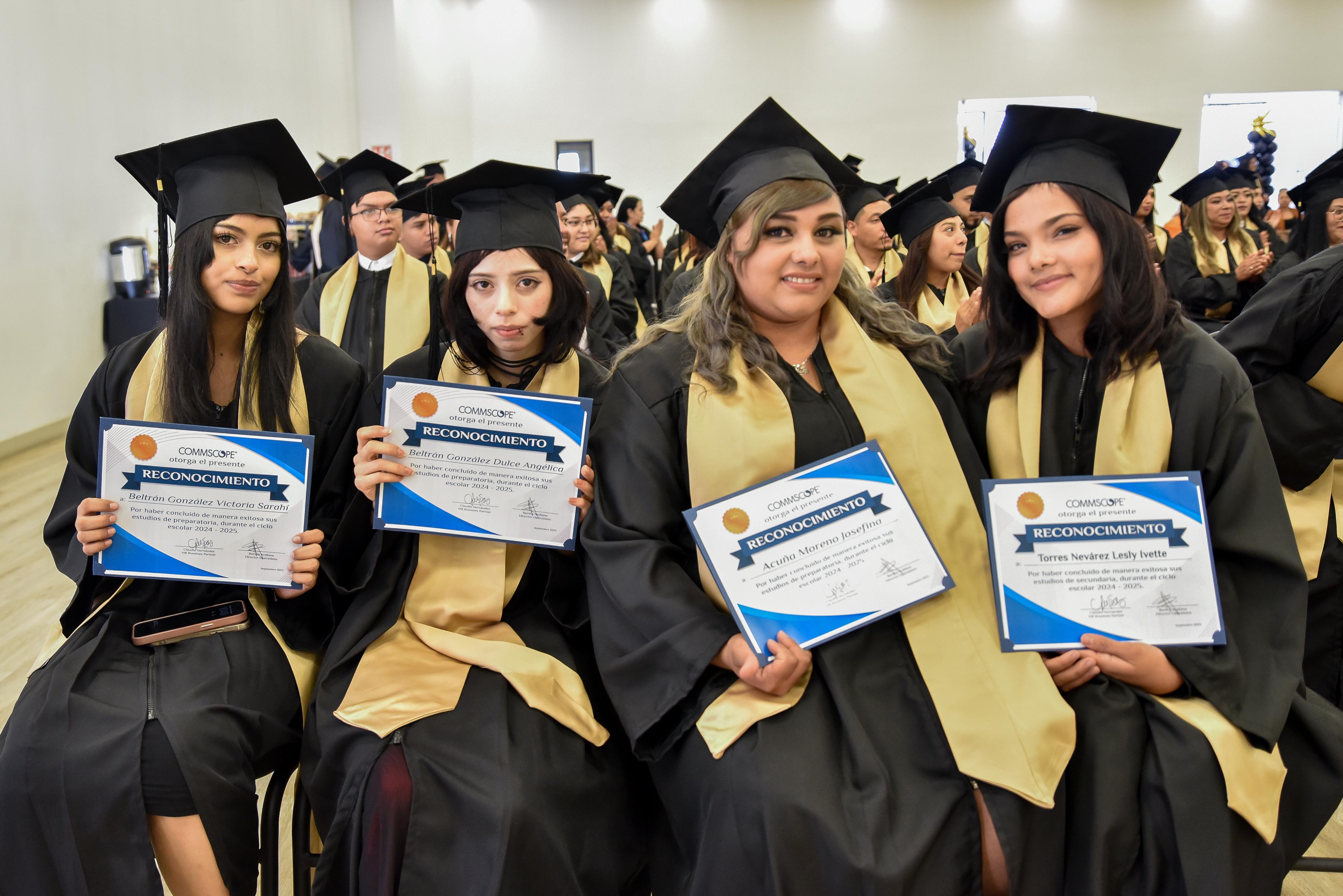 En una ceremonia de graduación realizada en las instalaciones de Index Juárez, 14 trabajadores de la empresa Commscope recibieron su certificado de secundaria y 49 de preparatoria, como resultado de la alianza que tiene el sector maquilador con Gobierno del Estado.