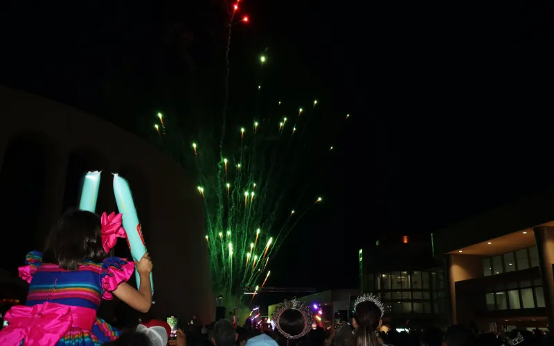 El tradicional Grito estuvo a cargo del cónsul Ibarra y fue seguido por un espectáculo de fuegos artificiales, como es tradición en este festejo.