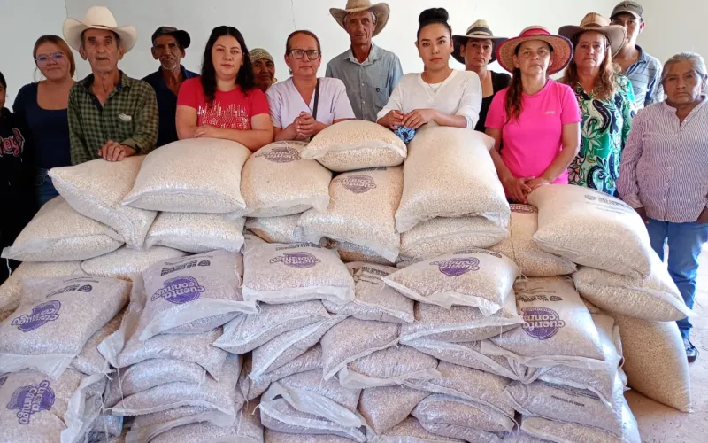 A través del Programa Integral para la Producción Agropecuaria, se entregaron 495 toneladas de maíz y 165 de frijol, equivalentes a 16 mil 500 paquetes, en beneficio directo de 5 mil 500 familias pertenecientes a 275 Comités Agropecuarios de 17 municipios.