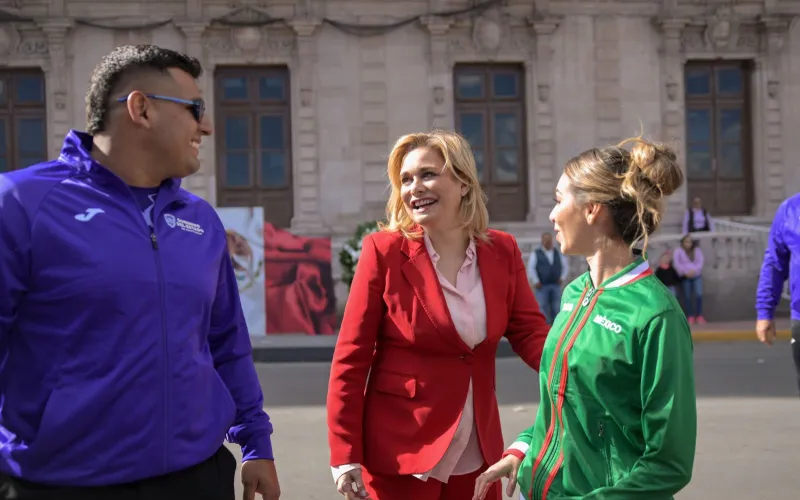 La atleta chihuahuense Alegna González, subcampeona mundial de Marcha en la categoría de 20 Kilómetros y ganadora del Premio Estatal del Deporte (PED) 2025, dio el banderazo inicial al acto cívico-deportivo.