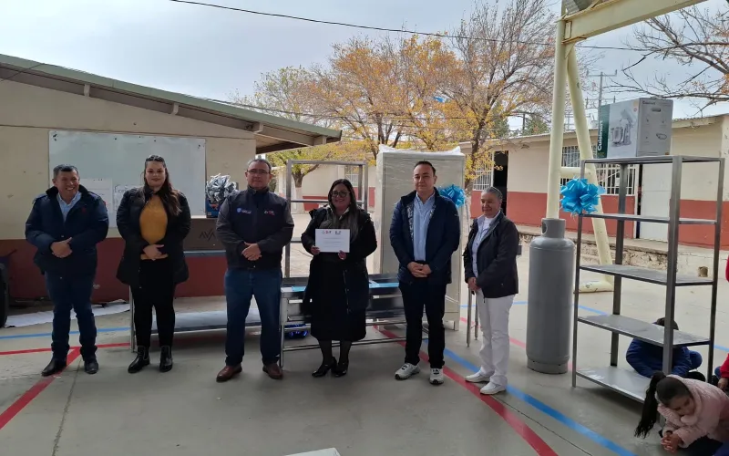 El DIF Estatal entregó equipamientos de comedores y cocinas a cinco escuelas de Cuauhtémoc y dos de Uruachi, para cerrar el año con un total de 45 planteles educativos apoyados en 22 municipios como parte de NutriChihuahua, en beneficio de 4 mil 831 estudiantes.
