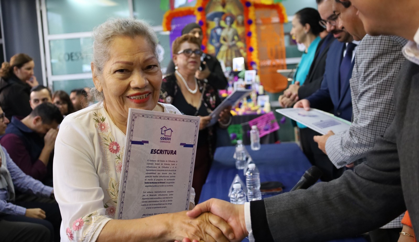 El Gobierno del Estado, a través de la Comisión Estatal de Vivienda, Suelo e Infraestructura (Coesvi), entregó 40 escrituras de casas en los fraccionamientos IVI-Coesvi, ubicados en Chihuahua, Aquiles Serdán, Aldama, Cuauhtémoc, Camargo y Juárez.