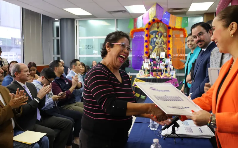 Raquel Ibarra Carlos, habitante del fraccionamiento José María Ponce de León y beneficiaria del programa, expresó su agradecimiento por las escrituras de su casa luego de varios años de espera, y destacó importancia de contar con certeza jurídica sobre su patrimonio familiar.