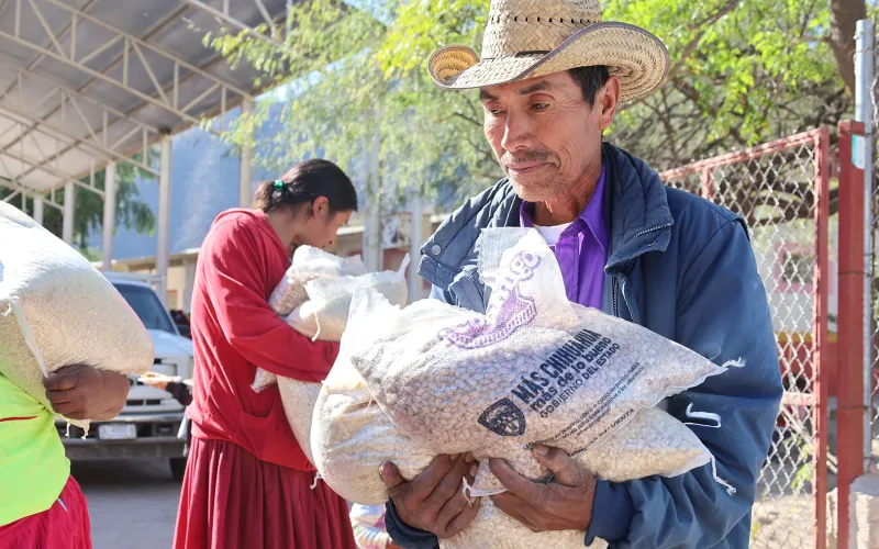 Entrega Estado apoyos alimentarios y chamarras a familias de comunidades indígenas en Urique