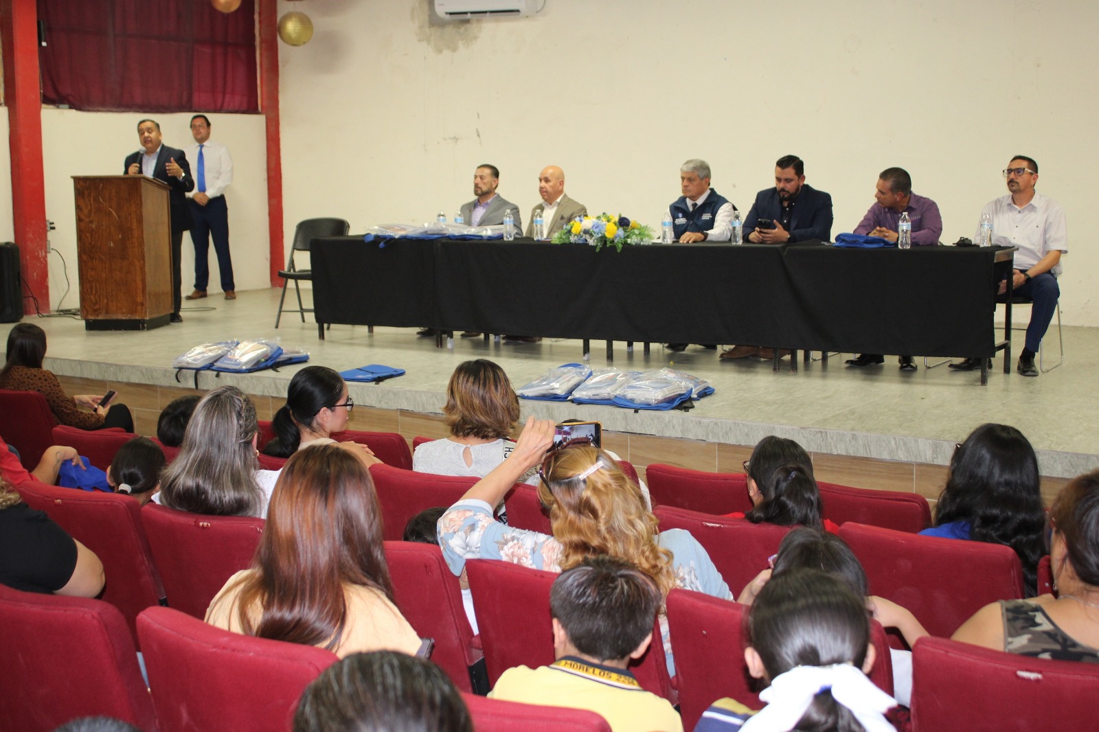 El acto fue en la Secundaria Estatal No. 3012, donde el representante de Gobierno en la frontera, Carlos Ernesto Ortiz Villegas; y el subsecretario de Educación Zona Norte, Maurilio Fuentes Estrada, destacaron la importancia de entregar recursos que impulsen el aprendizaje.