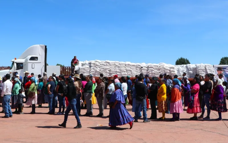 En Guachochi se realizó un evento masivo en la cabecera municipal, mismo que fue encabezado por el titular de la SPyCI, Enrique Rascón y por autoridades locales, donde se repartieron 52 toneladas de maíz y frijol entre los más de 2 mil 600 asistentes.