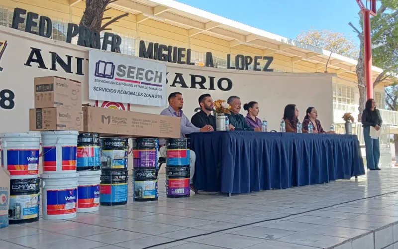 La Secretaría de Educación y Deporte (SEyD), a través de Servicios Educativos del Estado de Chihuahua (SEECH), entregó material de construcción a 18 escuelas del municipio de Jiménez con el propósito de fortalecer la infraestructura y mejorar la calidad educativa en beneficio de mil 974 estudiantes.