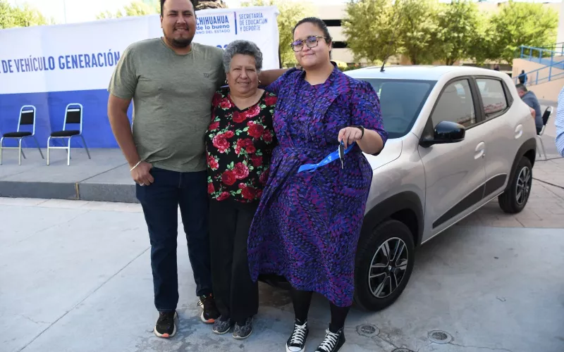 El acto se efectuó en la Plaza de la Revolución, a un costado del Edificio Héroes de la Revolución, donde recibió las llaves de un vehículo Renault Kwid 2025, con un valor aproximado de 270 mil pesos. La joven estuvo acompañada por familiares y amigos.