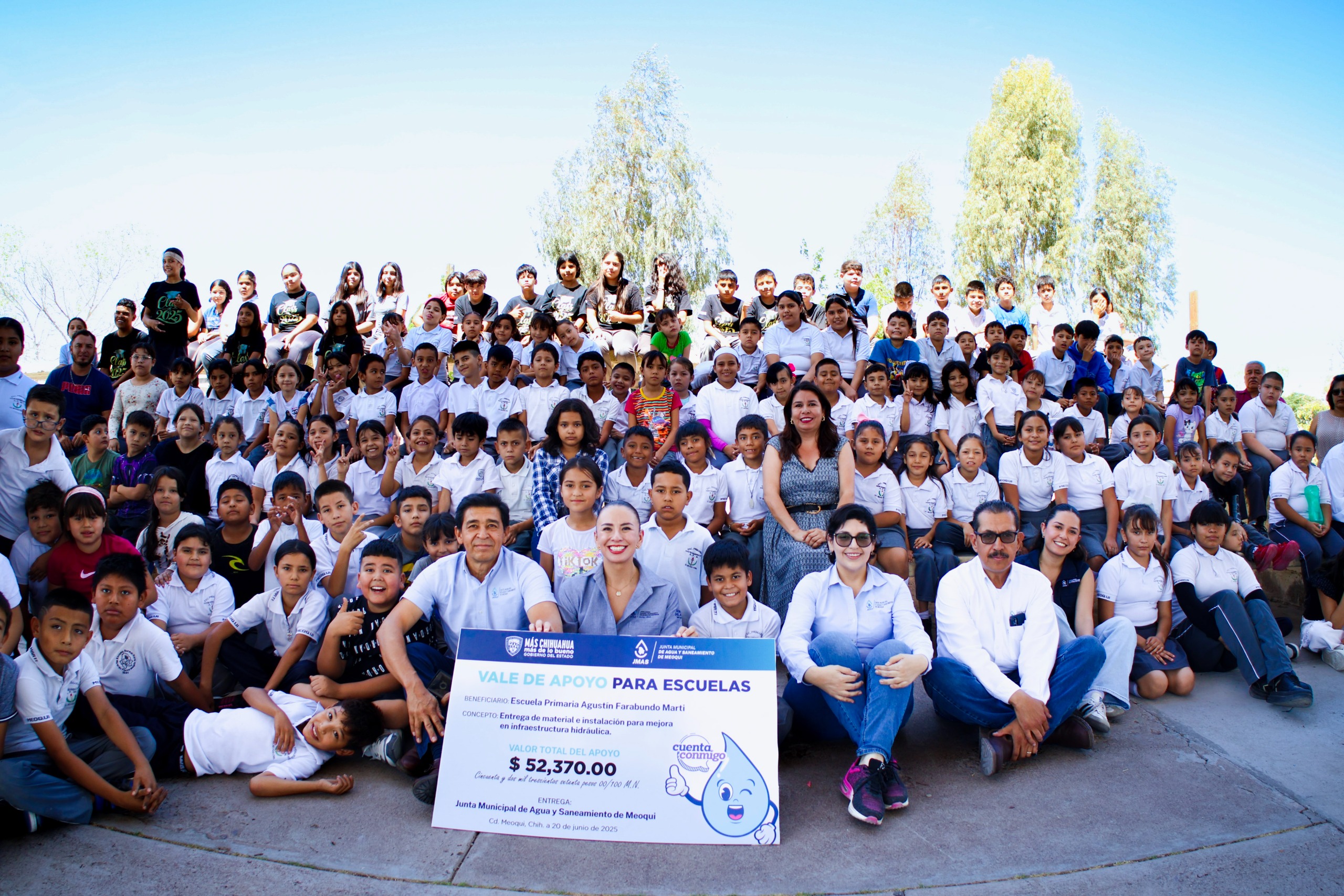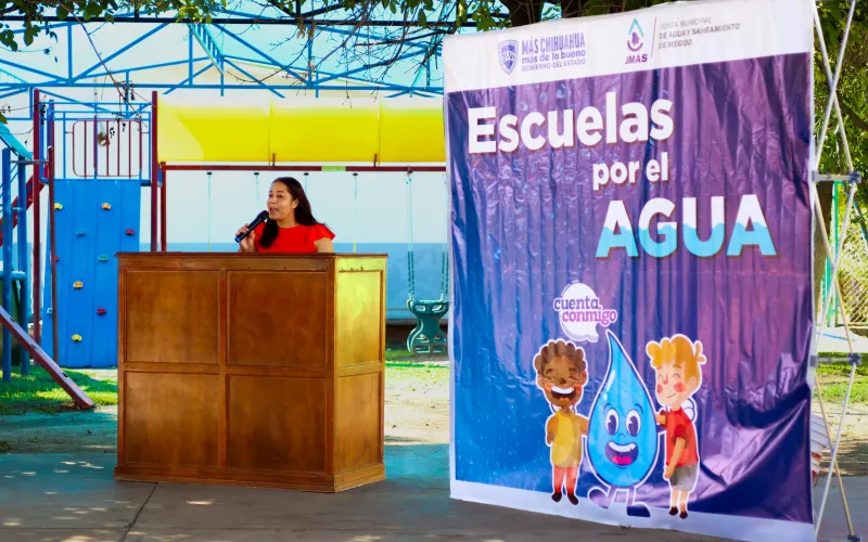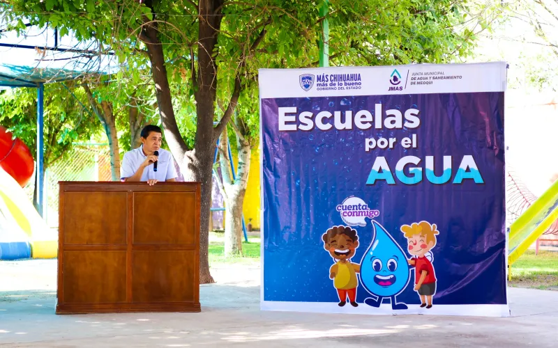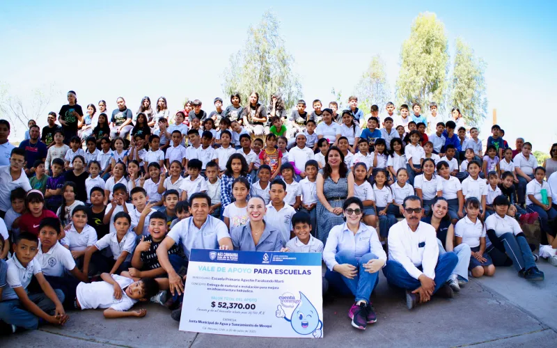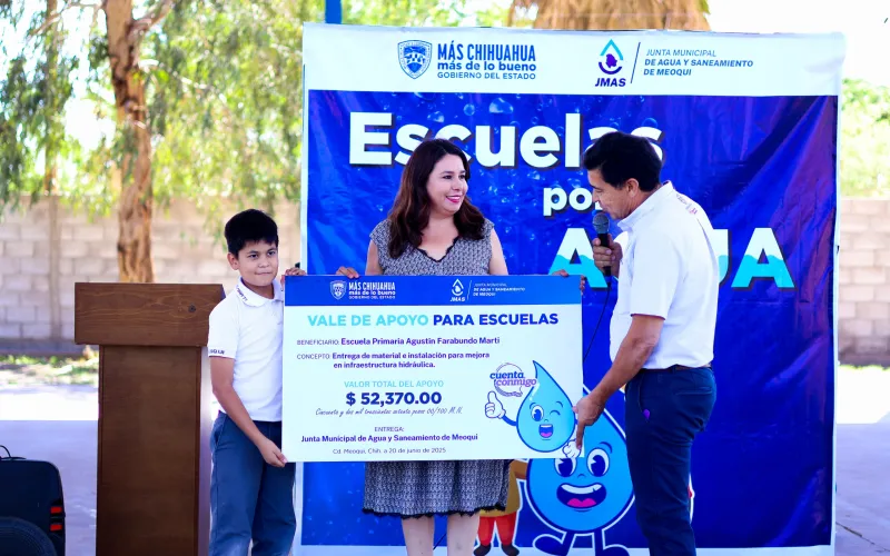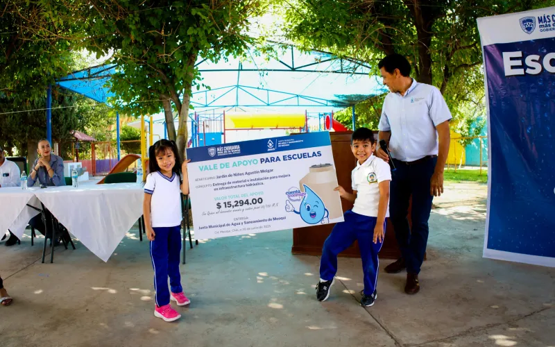 La Junta Central de Agua y Saneamiento (JCAS) y la Junta Municipal de Agua y Saneamiento (JMAS) de Meoqui llevaron a cabo la entrega simbólica de materiales y apoyos económicos, destinados a la mejora de infraestructura hidrosanitaria y la implementación de sistemas de riego en dos planteles escolares.