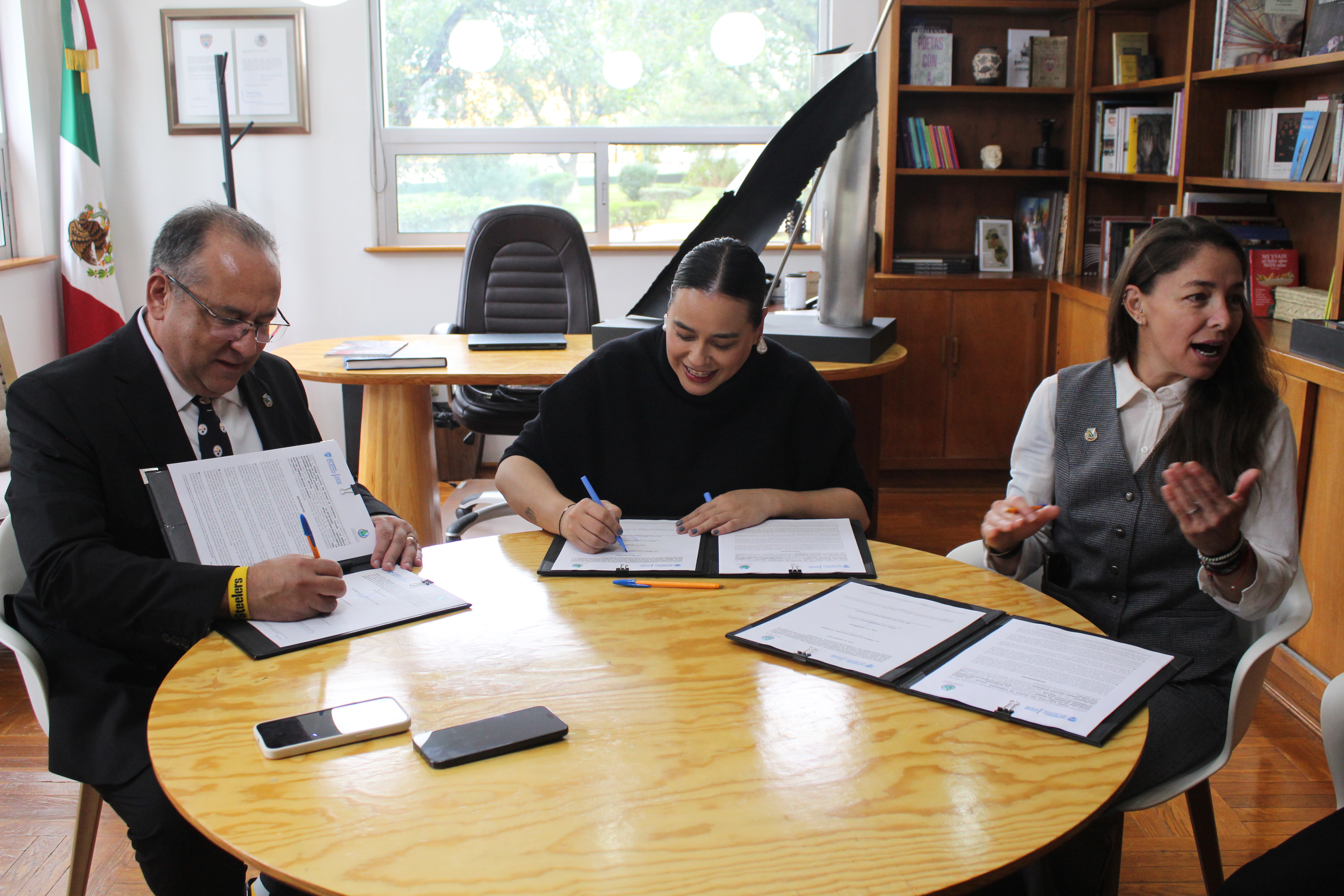 La firma fue encabezada por la secretaria de Cultura, Alejandra Enríquez Gutiérrez; el rector Luis Rivera Campos y la directora de Extensión y Difusión, Ruth Grajeda, y tiene como objetivo promover las manifestaciones creativas y la protección del patrimonio cultural del estado.
