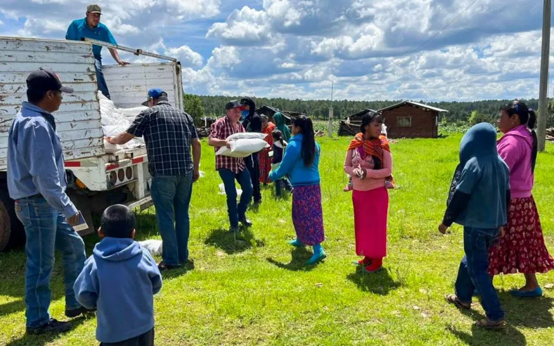 En El Cuervo se inmunizó a 103 personas y se entregaron 5.4 toneladas de alimento a 270 familias; en la cabecera municipal, más de mil personas fueron atendidas con la distribución de 20 toneladas de maíz y frijol.