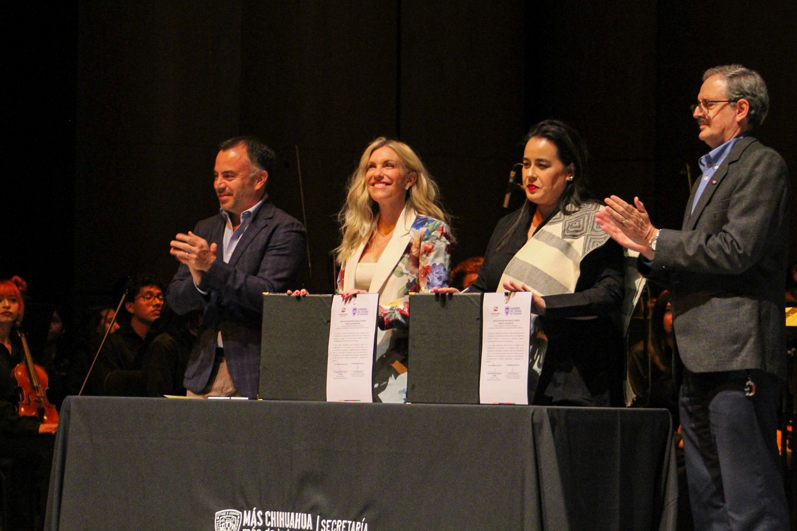 Mediante esta alianza se integrarán cuatro nuevas orquestas y coros en los municipios de Madera, Guadalupe, Delicias y Chihuahua, en beneficio de más de 600 niñas y niños, muchos de ellos, bajo tutela del DIF Estatal.