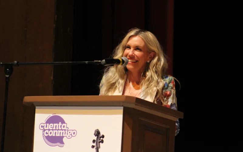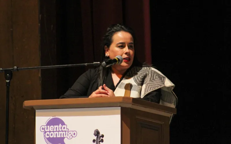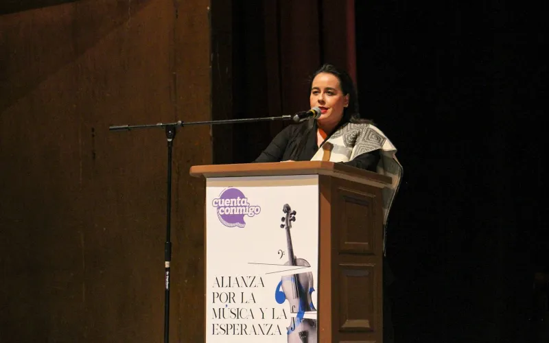 Durante el acto protocolario, la secretaria de Cultura, Alejandra Enríquez, destacó que llegar a más municipios, demuestra la convicción del Gobierno del Estado, de que la transformación de la niñez a través de la música es posible.