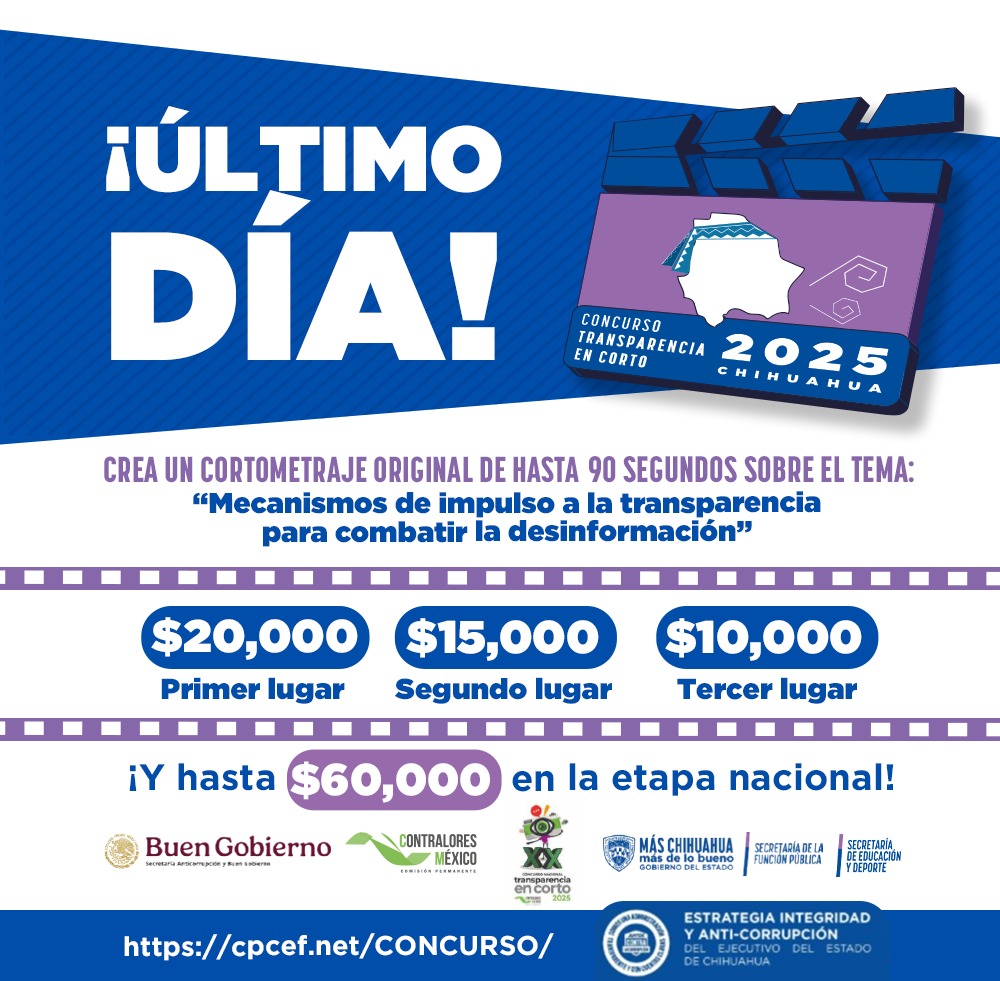 Las bases completas del concurso pueden consultarse en el siguiente enlace: https://www.chihuahua.gob.mx/prensa/bases-del-concurso-transparencia-en-corto-2025-chihuahua?utm_source=chatgpt.com